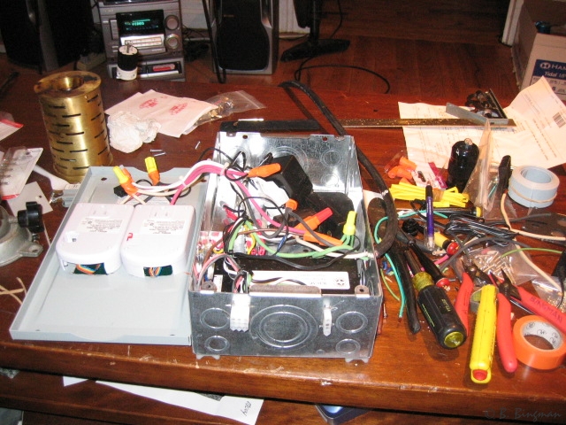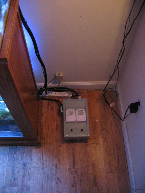 ![]() | Before: Metal halide ballast, fan transformer, 2x32w PC ballast, Timer, moonlight transformer. Lots of wires. Just a mess! |