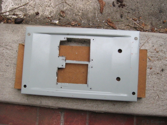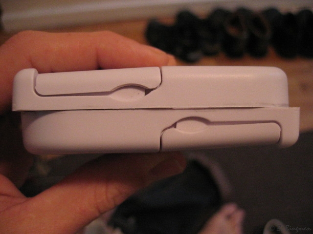 ![]() | The next step was to get rid of the prongs for the plug. I used my roto-zip again. Before on the left, after on the right. |