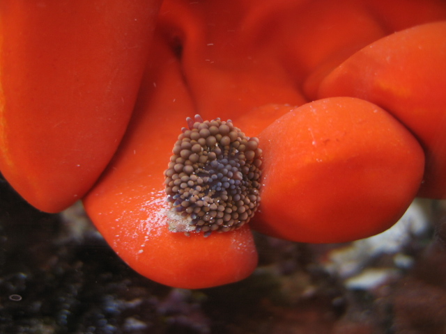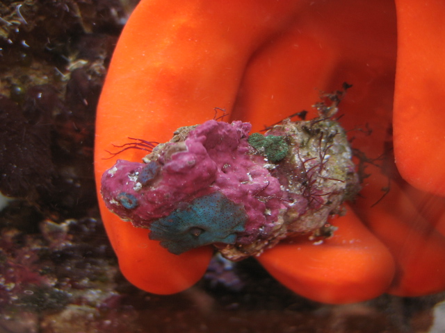 # 8 Orange/Blue-grey Ricordia. One polyp, I'd prefer to trade one-for-one for some other colorful ricordia. What colors do you have? (see other picture for better color) |